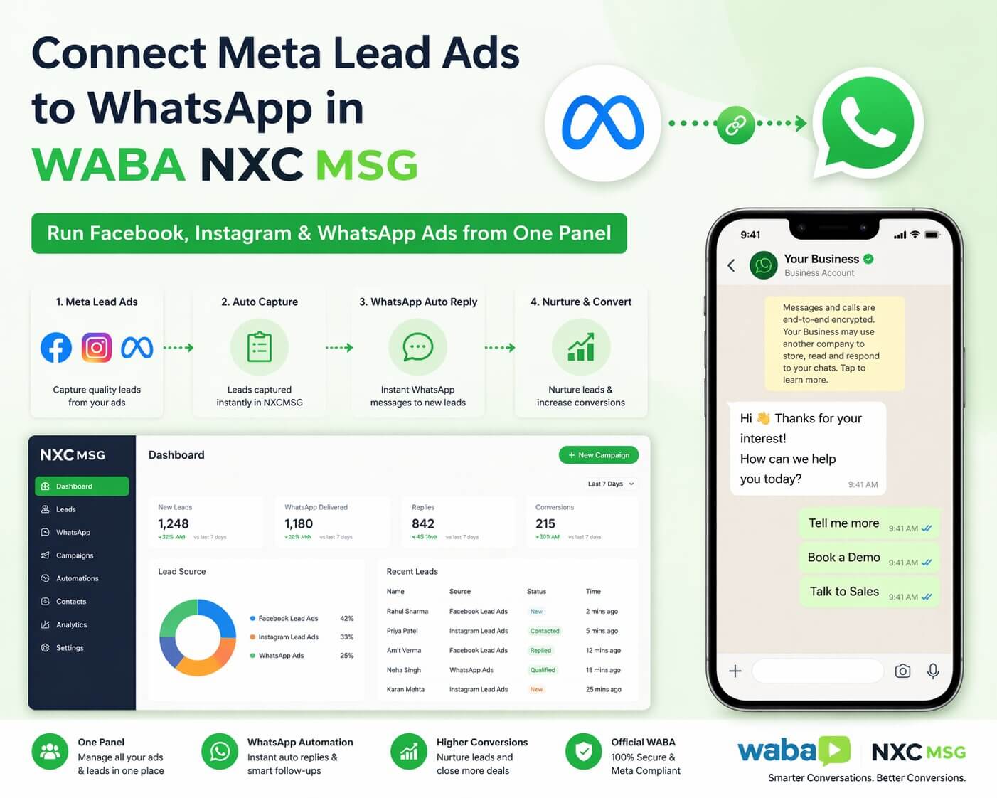 Connect Meta Lead Ads to WhatsApp in WABA NXCMSG — Run Facebook, Instagram & WhatsApp Ads from One Panel