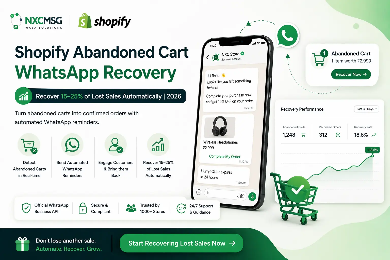 Recover lost sales with Shopify abandoned cart WhatsApp recovery. Learn how to automate reminders, send personalized messages, and win back 15–25% of abandoned carts using WhatsApp Business API. Boost conversions, increase revenue, and improve customer engagement with smart automation in 2026.