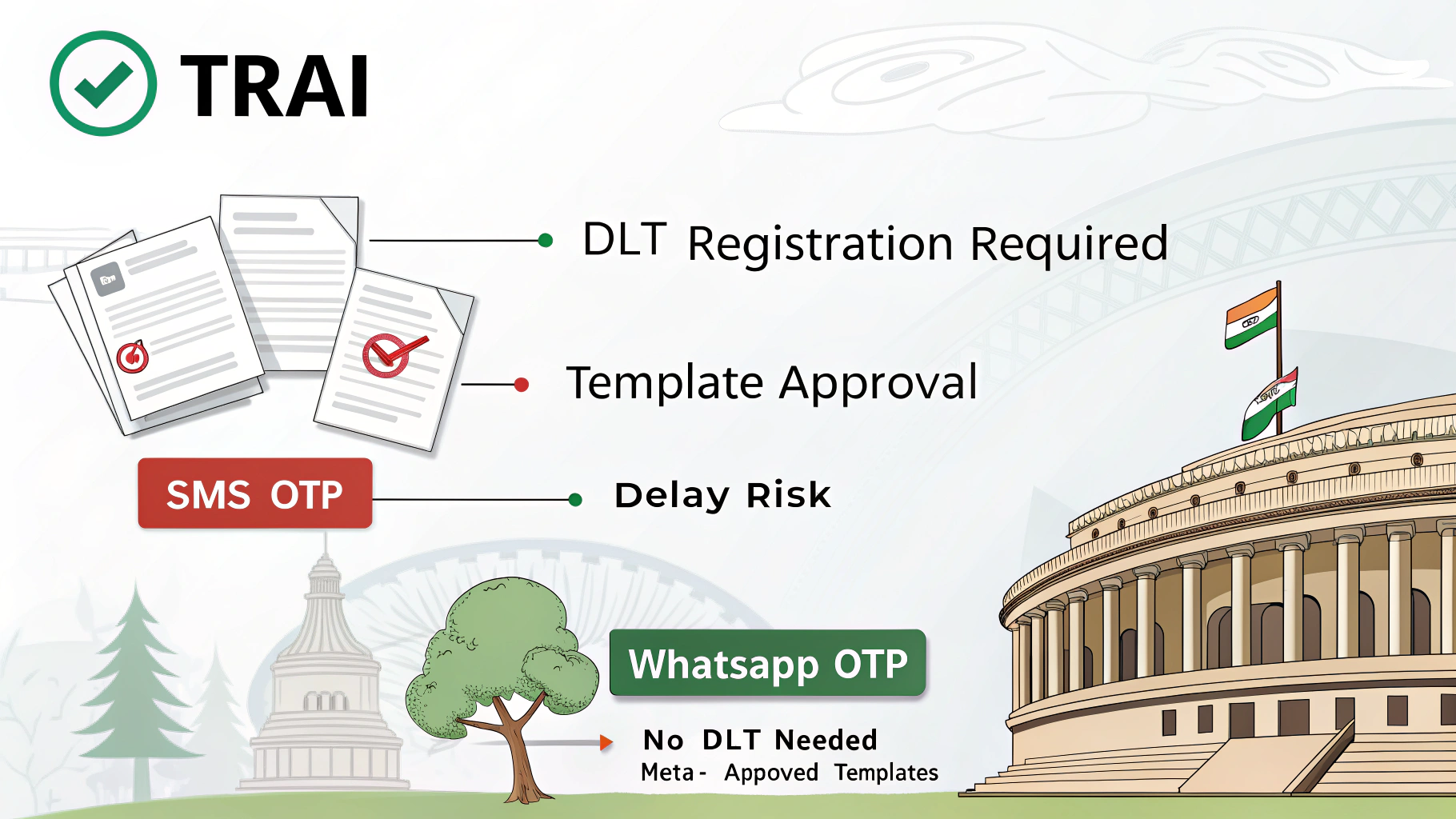 WhatsApp OTP does not require TRAI DLT registration. Your authentication