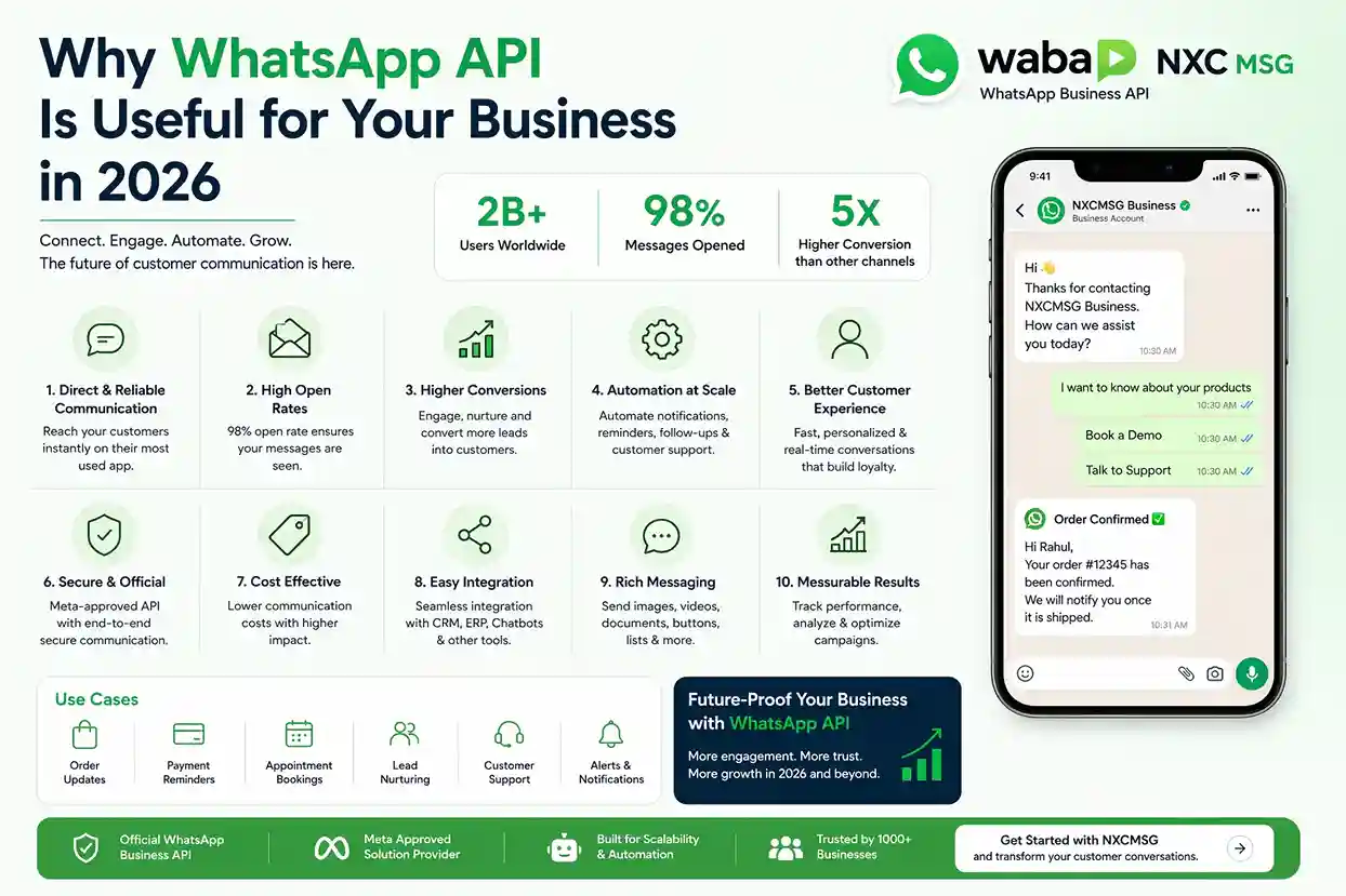 Discover how WhatsApp Business API helps automate customer support, boost sales, send bulk messages, and improve engagement. Learn why it’s essential for business growth in 2026.