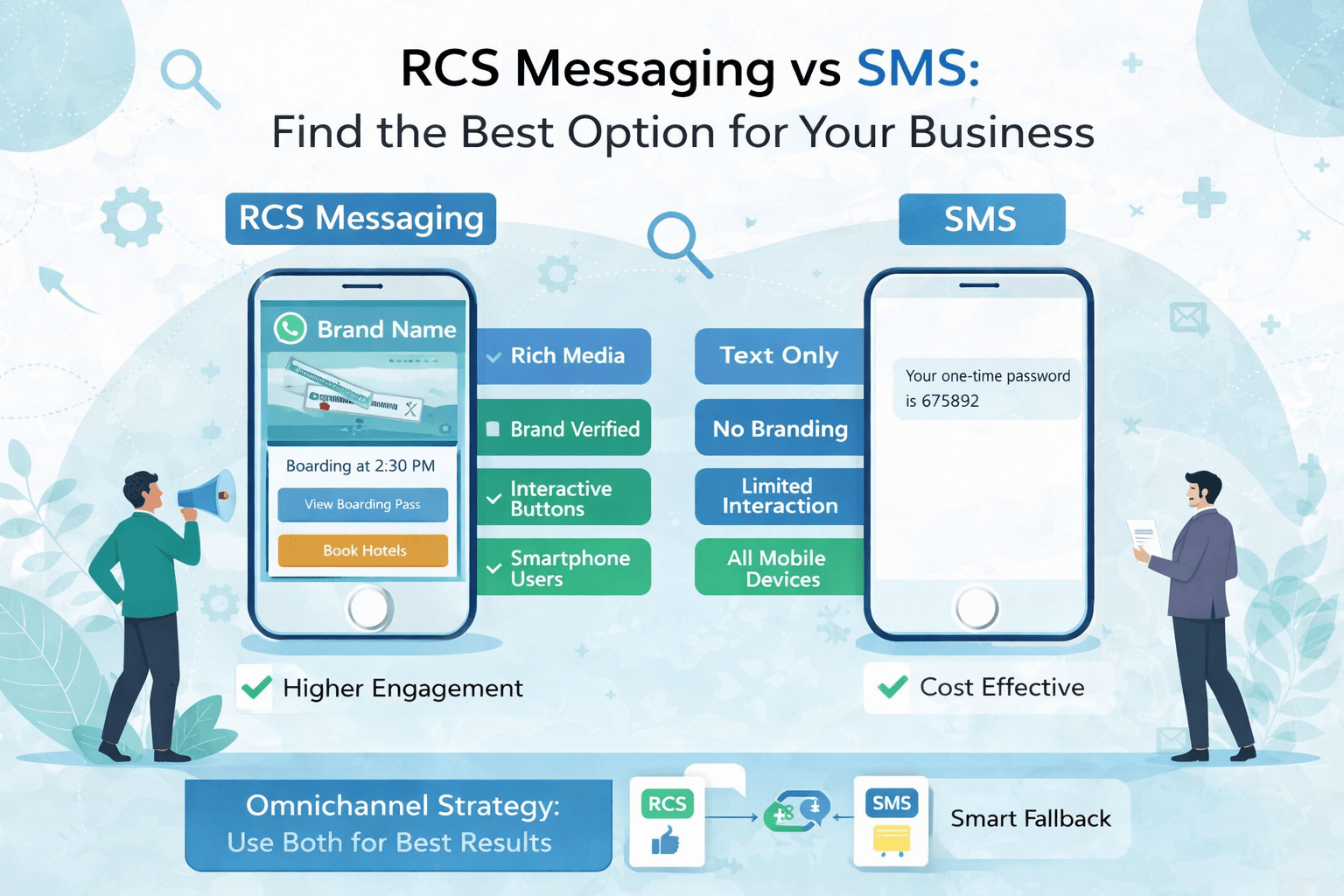 Compare RCS Messaging vs SMS to find the best option for your business. Learn differences, benefits, costs, use cases, and ROI.RCS Messaging vs SMS comparison for businesses. Learn features, advantage...