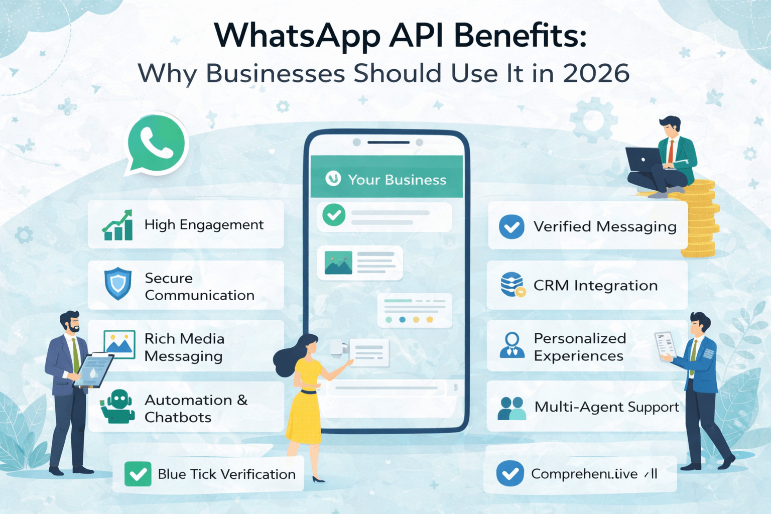 Discover the top benefits of WhatsApp Business API for businesses in 2026. Learn how it improves customer engagement, automation, security, and ROI. WABA WhatsApp Business API helps businesses in 2026...