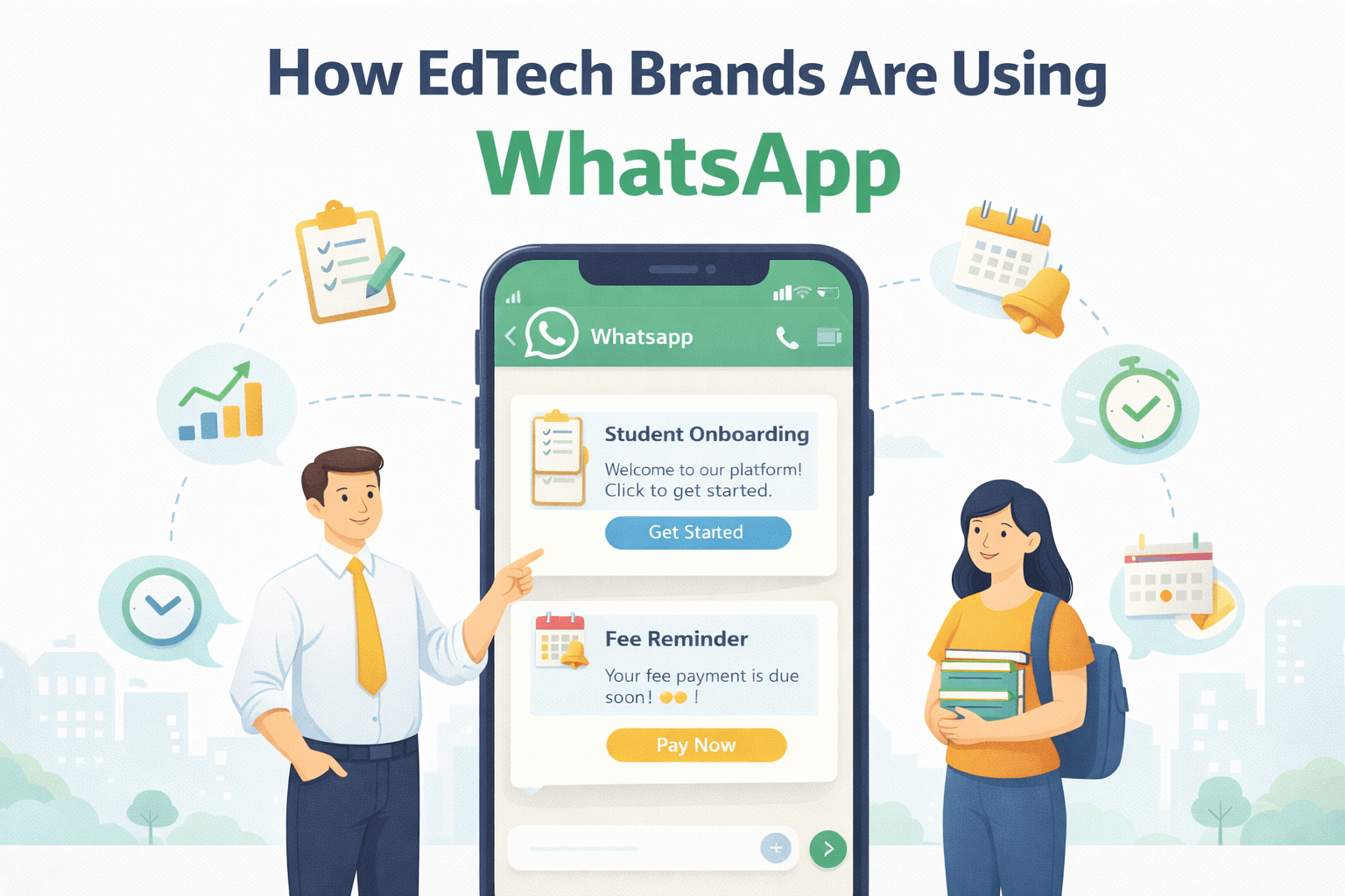 Discover how EdTech brands use WhatsApp Business API for student onboarding, fee reminders & admission automation. Real workflows, templates & use cases for coaching institutes.