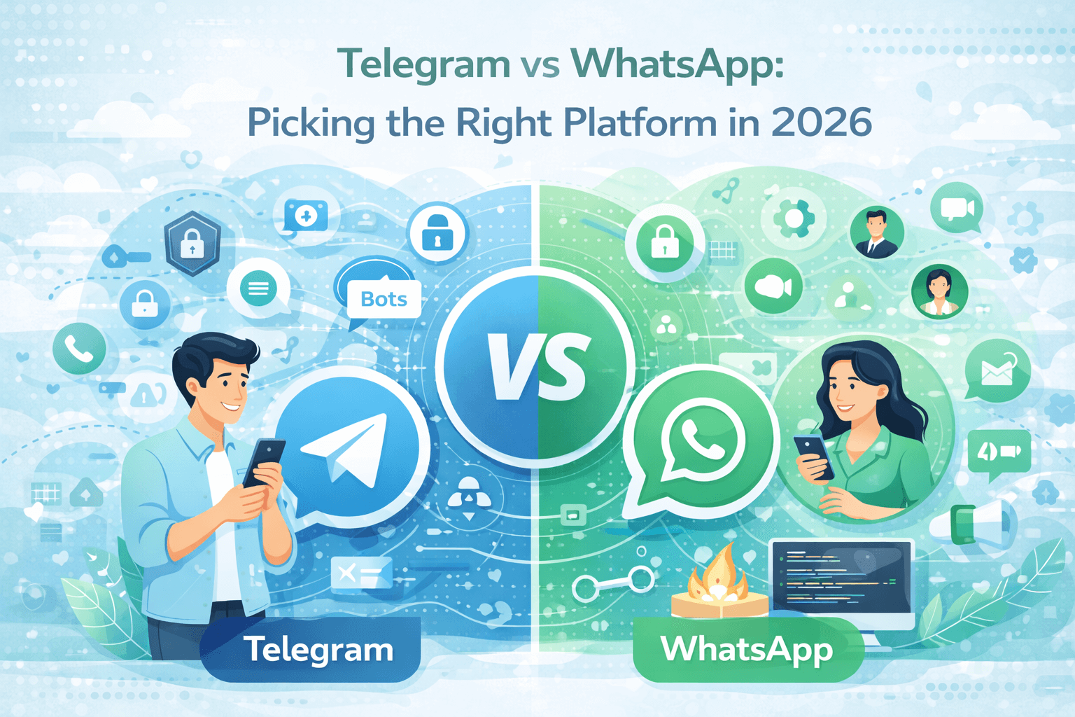 Telegram vs WhatsApp — which platform is right for your audience? Compare features, privacy, business tools, and marketing potential in this 2026 guide.